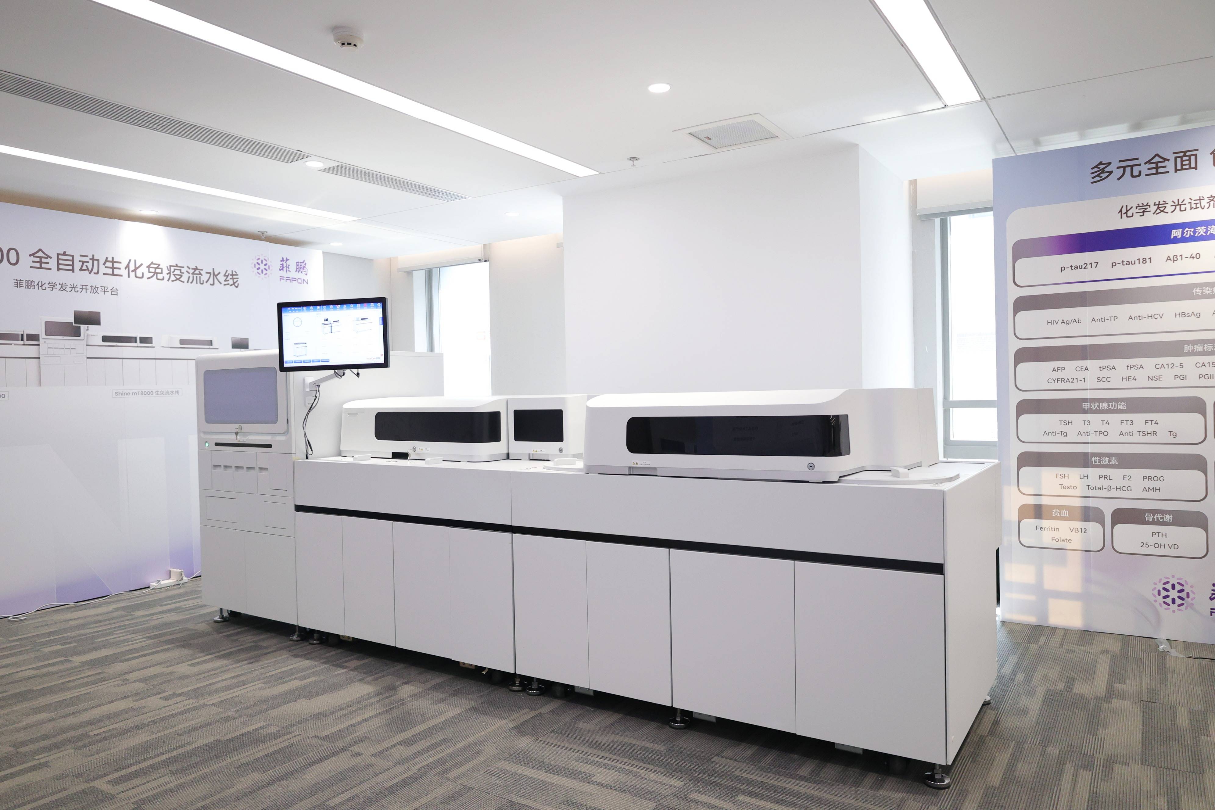 一起,菲鹏还展出掩盖阿尔茨海默病(AD)、肿瘤标志物、心脏标志物、流行症、甲功等 70 余个项目的化学发光试剂解决计划,依托“试剂中心质料+敞开仪器渠道+试剂解决计划”一站式服务形式,全方位满意全球客户的多样化需求,展示其在 IVD 范畴的全链条技能实力。