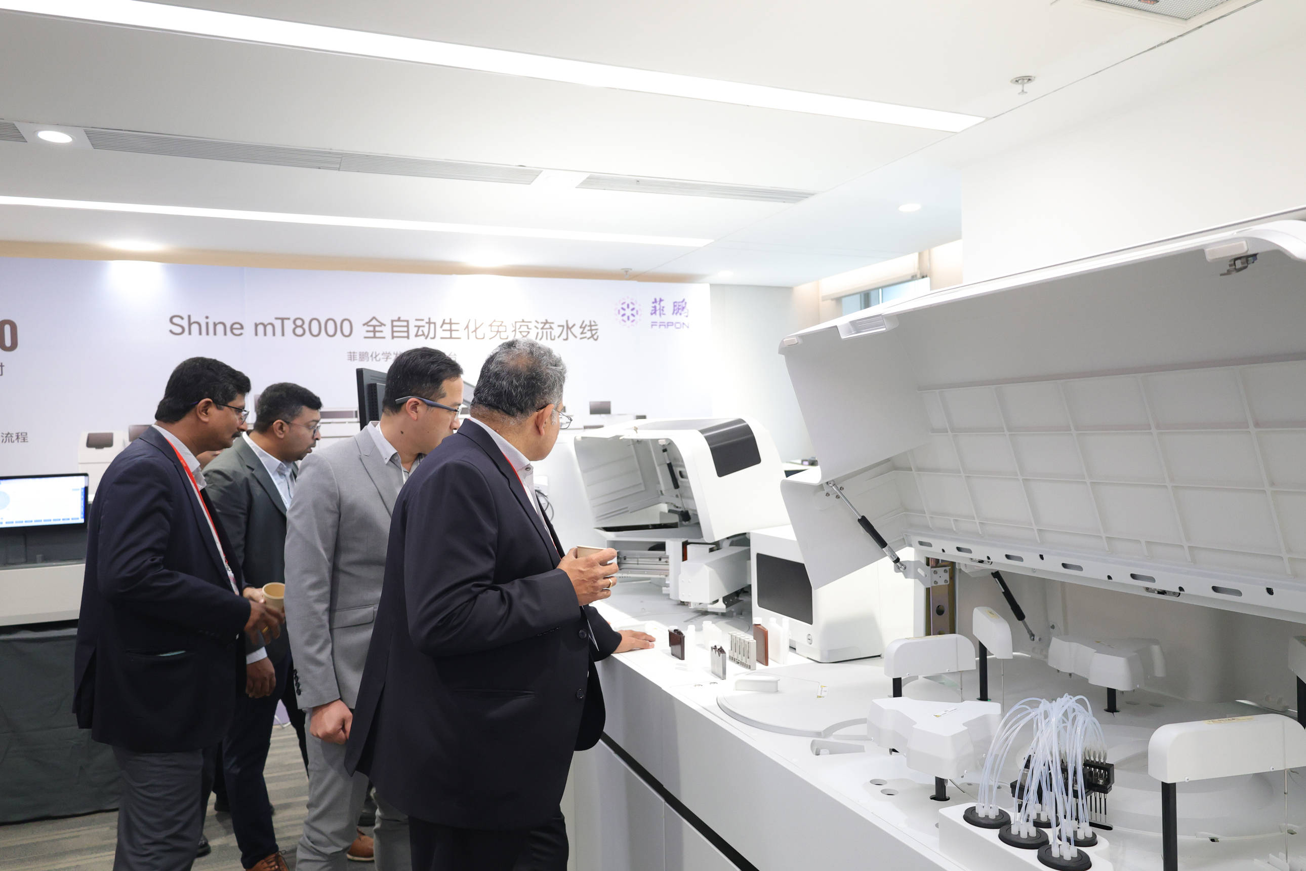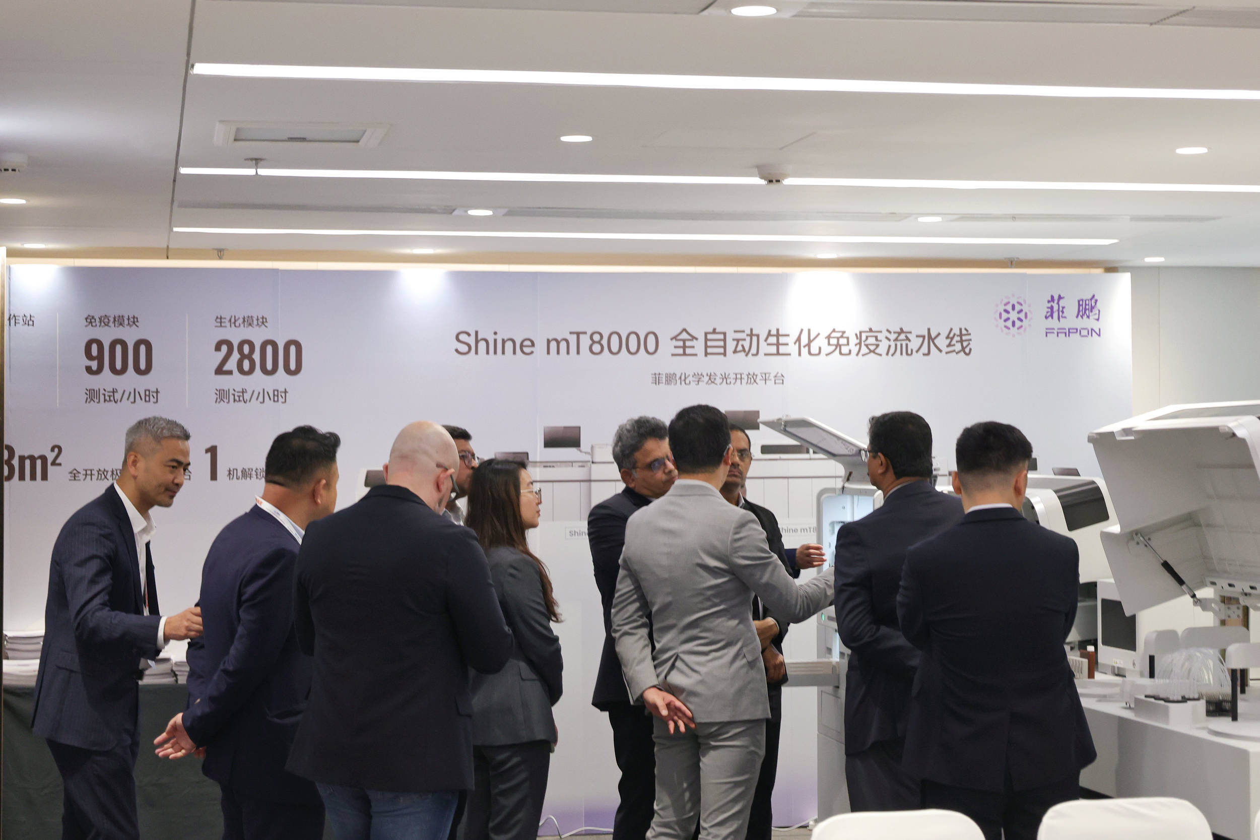 面对国内 IVD 商场增速放缓、集采常态化的职业新格局,菲鹏根据多年全球服务经历,深度分析了当时 IVD 职业出海时机及初次揭露共享多个出海成功事例,并重磅发布了 Shine mT8000 生化免疫流水线、心肌标志物及小分子检测等范畴的立异产品,向参与的国内外客户全面展示了其作为“全球 IVD 全体解决计划供货商”的最新开展作用。